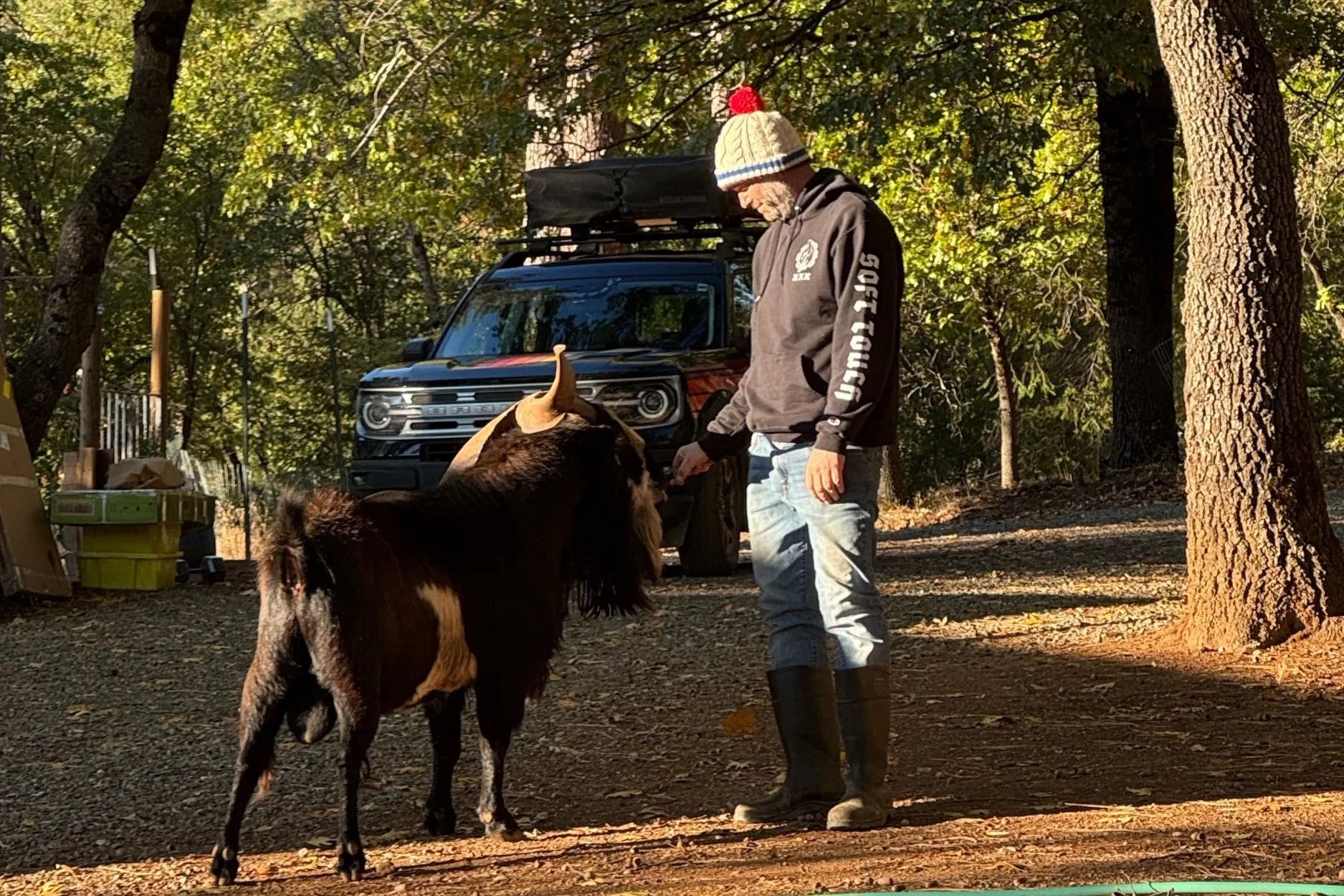 Founders Om and Dustin have created a farm sanctuary where animals roam the forest freely- nestled in the beautiful hills of Grass Valley. Om is a plant forward chef and spiritual guide and Dustin is the farmer behind the scenes of this idllic sanctuary.